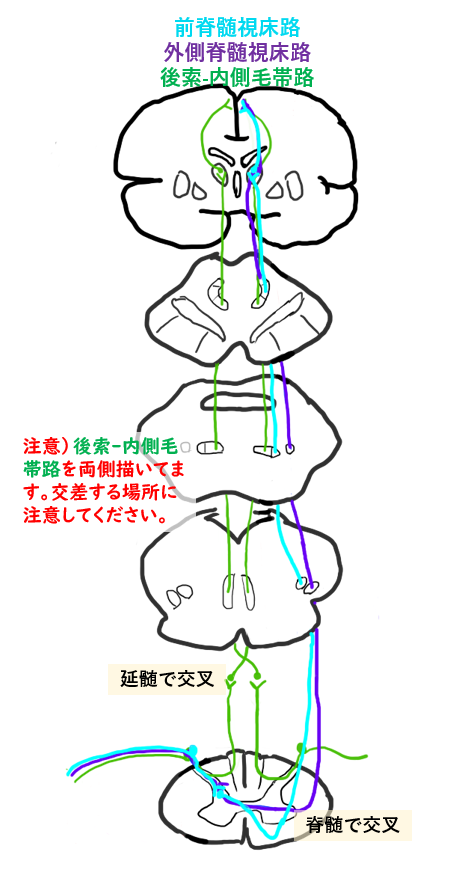 これまでの感覚路をまとめて描くと以下のようになります。