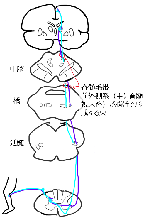 後角ニューロンから出て脊髄レベルで交叉(前白交連)する ← これ国家試験で超重要!